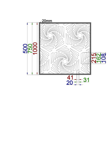 Vzory jsou vypáleny s laserem do kvalitních plechů. Tloušťka plechu je u oceli, nerezu, cortenu a pozinku 2mm a pro hliník 3mm.