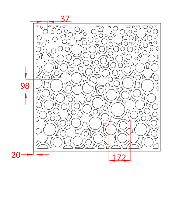 Vzory jsou vypáleny s laserem do kvalitních plechů. Tloušťka plechu je u oceli, nerezu, cortenu a pozinku 2mm a pro hliník 3mm.