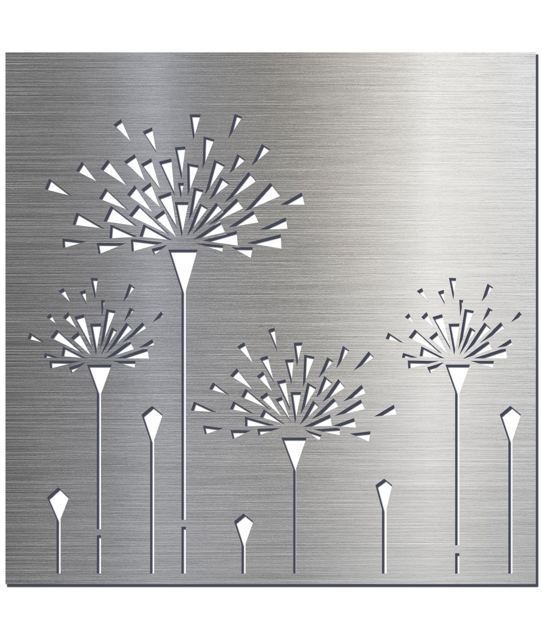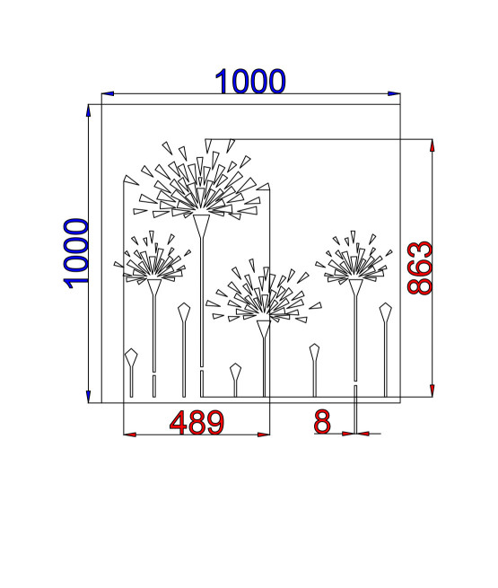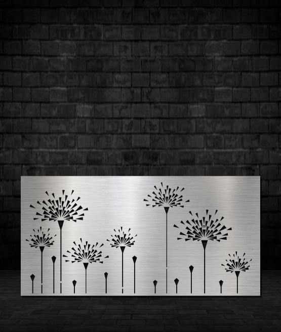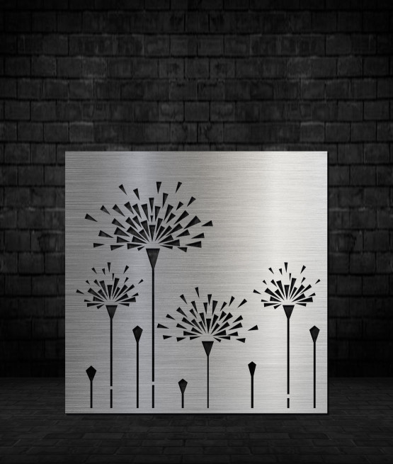Vzory jsou vypáleny s laserem do kvalitních plechů. Tloušťka plechu je u oceli, nerezu, cortenu a pozinku 2mm a pro hliník 3mm.