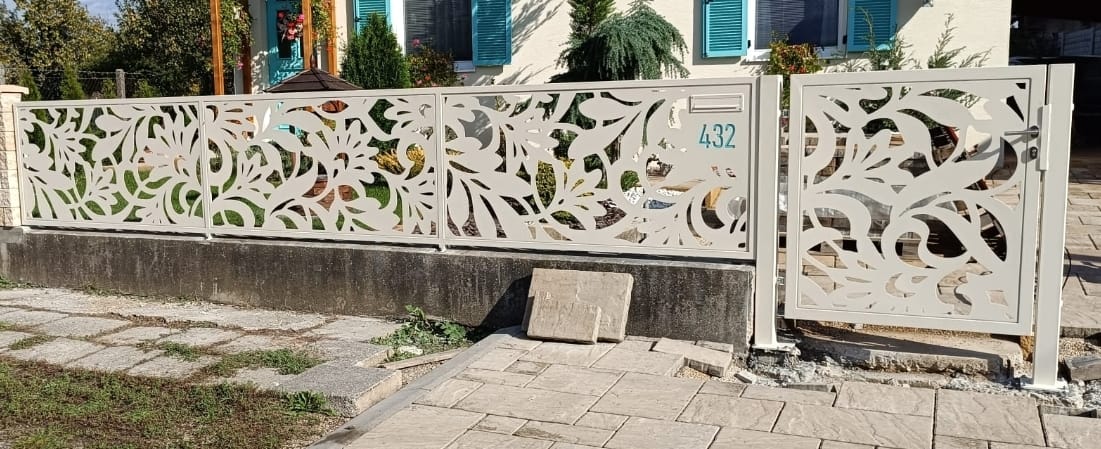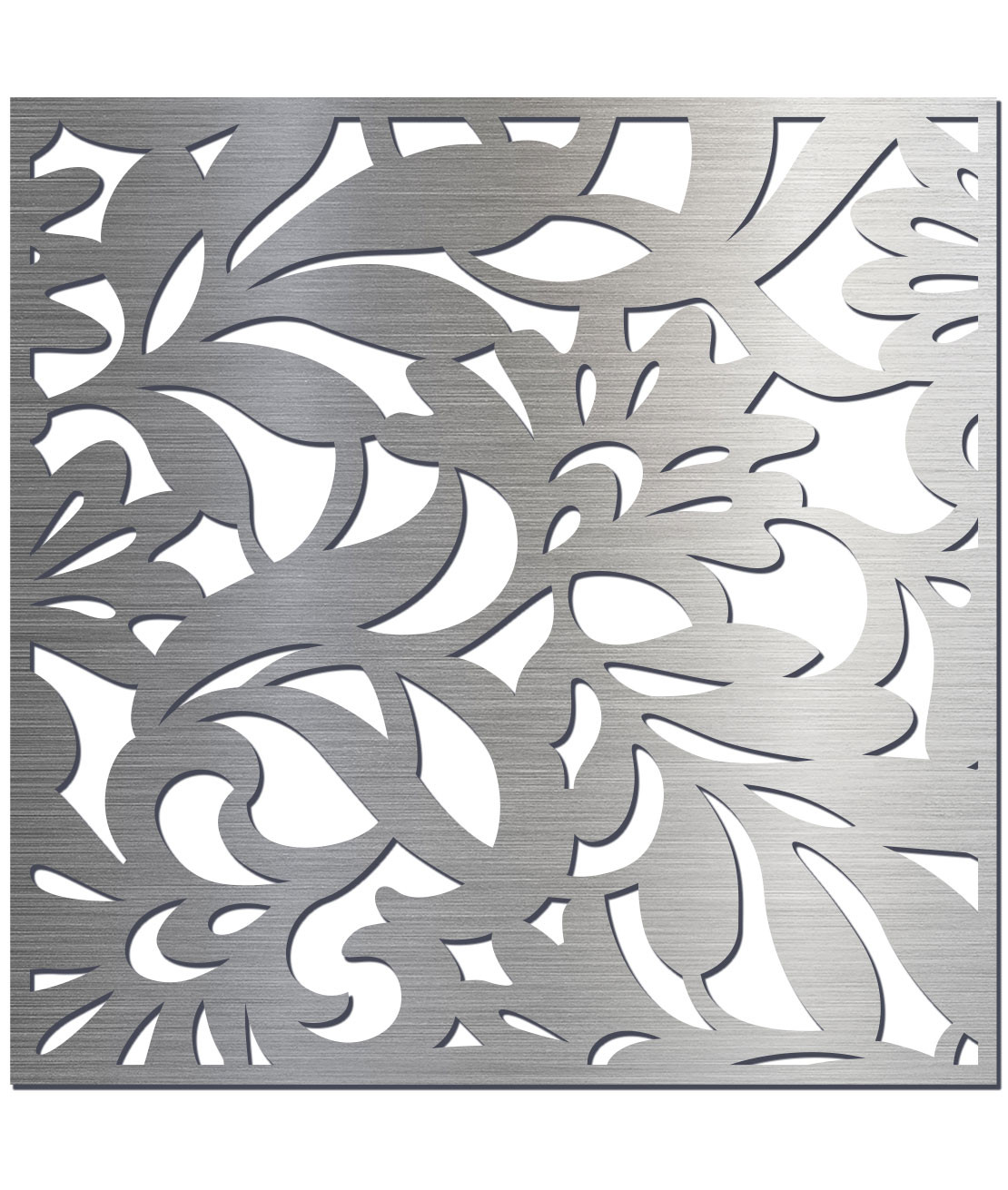 Vzory jsou vypáleny s laserem do kvalitních plechů. Tloušťka plechu je u oceli, nerezu, cortenu a pozinku 2mm a pro hliník 3mm.