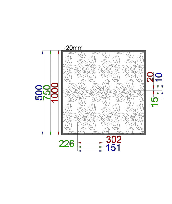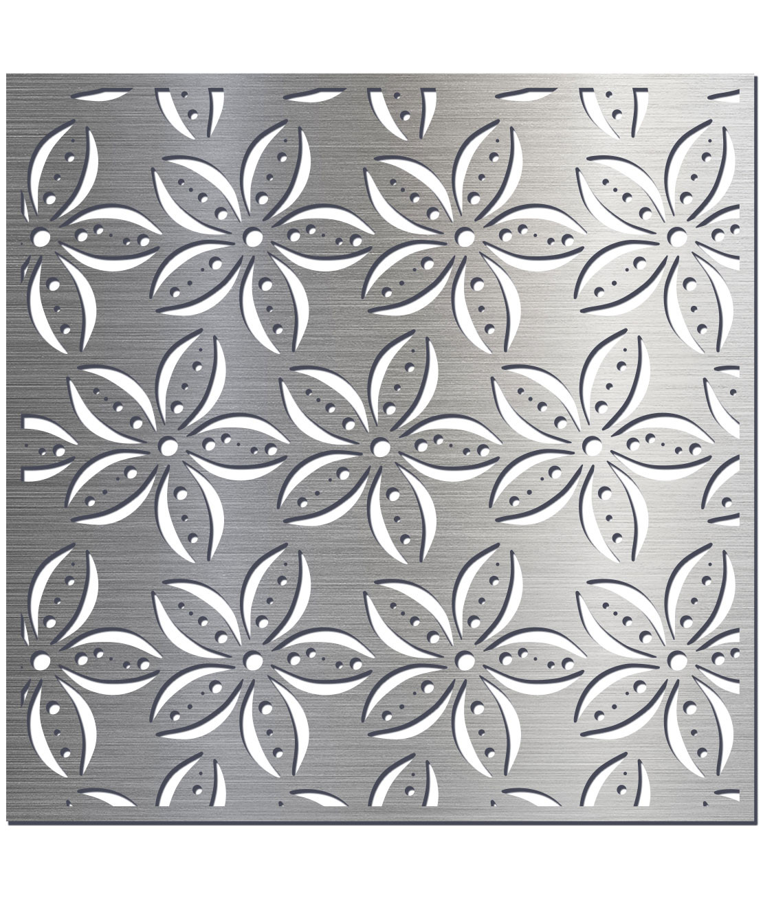 Vzory jsou vypáleny s laserem do kvalitních plechů. Tloušťka plechu je u oceli, nerezu, cortenu a pozinku 2mm a pro hliník 3mm.