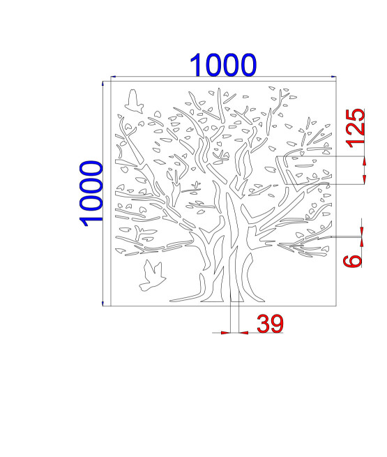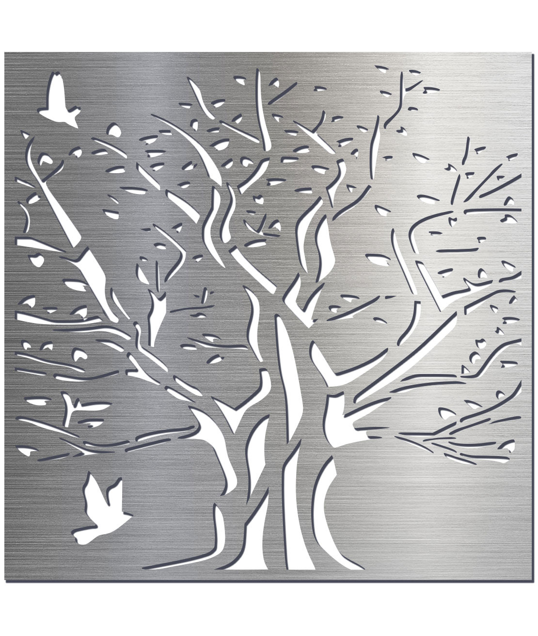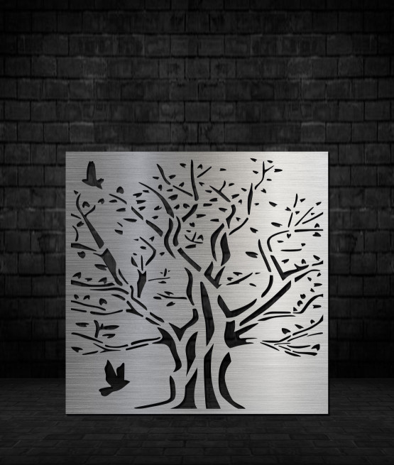 Die Designs werden mit einem Laser in hochwertige Platten gebrannt. Die Blechstärke beträgt 2 mm für Stahl, Edelstahl, Corten und Zink und 3 mm für Aluminium.
