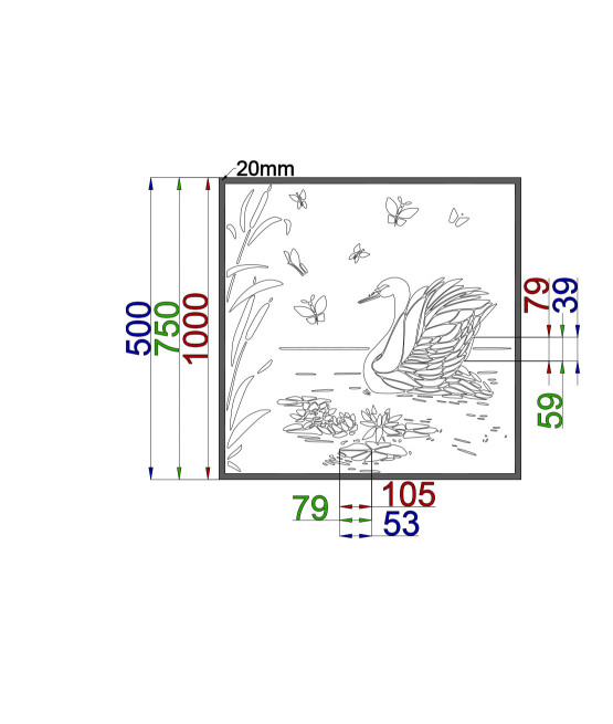 • Der Rand um die Außenkante des Blattes beträgt 20 mm