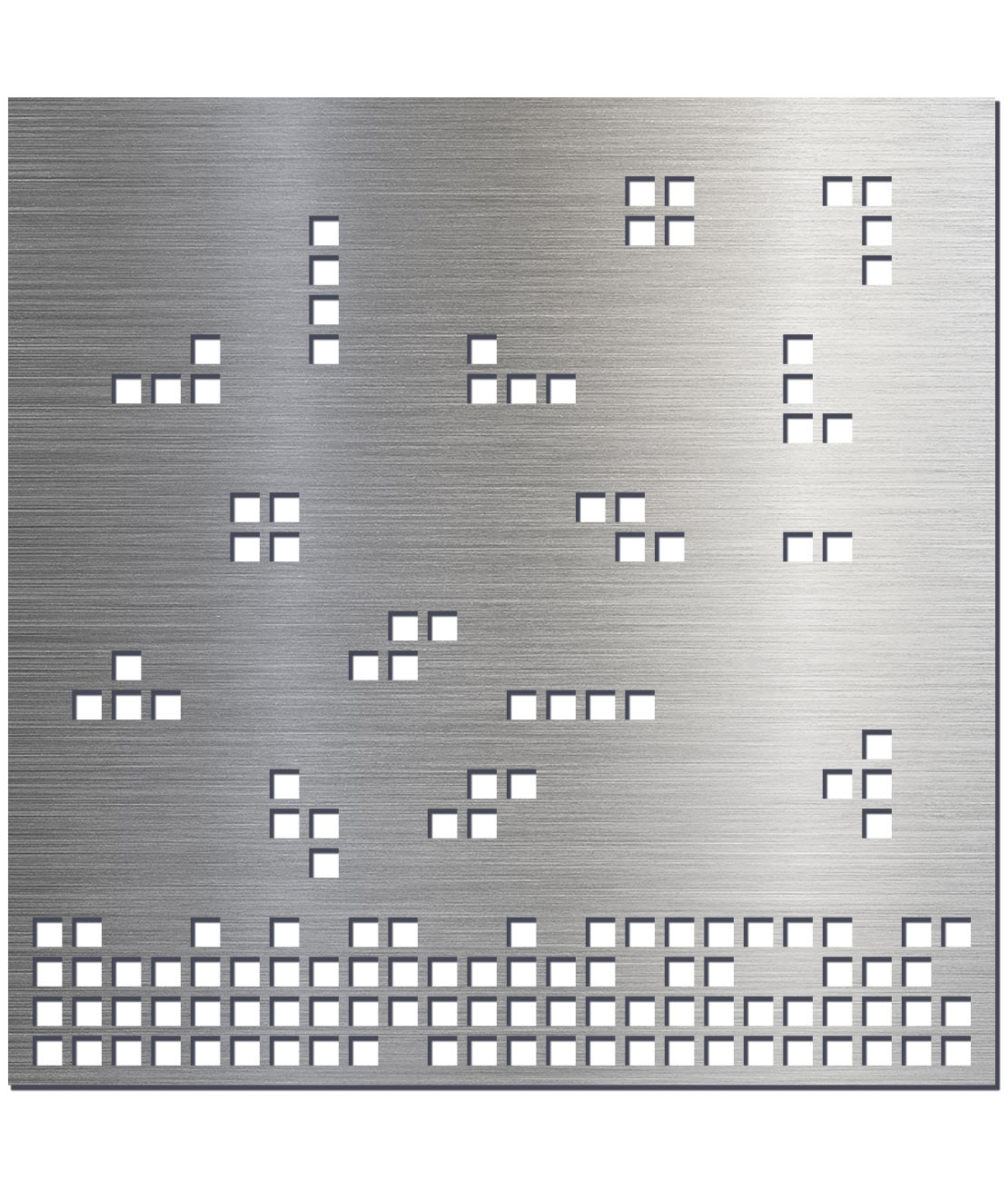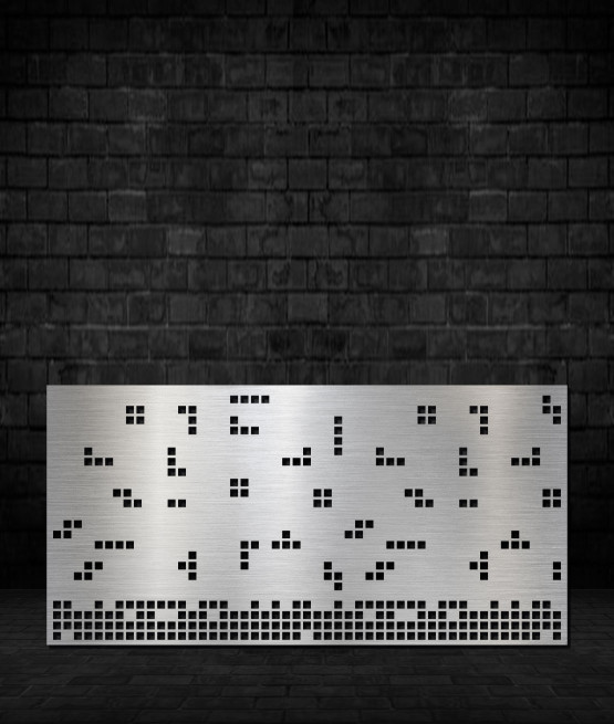 Die Designs werden mit einem Laser in hochwertige Platten gebrannt. Die Blechstärke beträgt 2 mm für Stahl, Edelstahl, Corten und Zink und 3 mm für Aluminium.