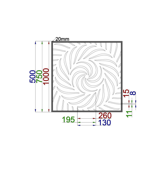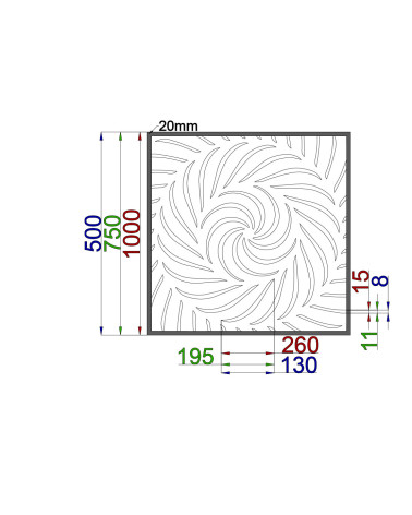For more options for customizing your design sheet, click the „Configurator“ button below. We produce each sheet in different dimensions and the pattern itself can be in three sizes - small, medium and large. The patterns are also ideal as a frameless piece for a fence.