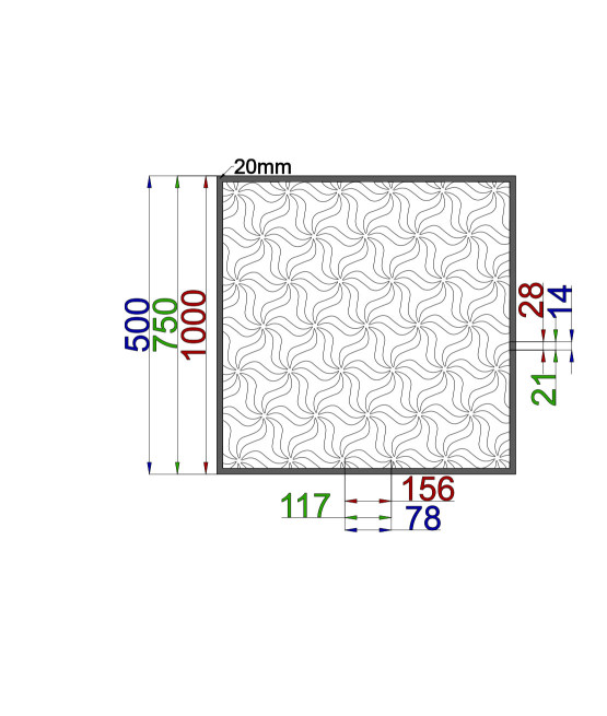 For more options for customizing your design sheet, click the „Configurator“ button below. We produce each sheet in different dimensions and the pattern itself can be in three sizes - small, medium and large. The patterns are also ideal as a frameless piece for a fence.