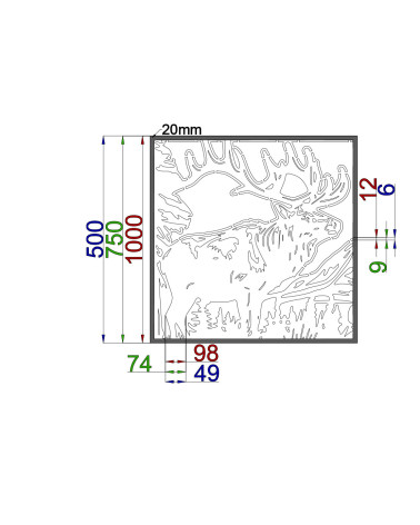The designs are burned with a laser into high-quality sheets. The sheet thickness is 2 mm for steel, stainless steel, corten and zinc, and 3 mm for aluminum.