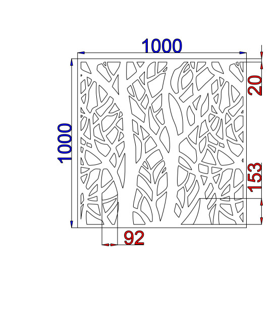 The designs are burned with a laser into high-quality sheets. The sheet thickness is 2 mm for steel, stainless steel, corten and zinc, and 3 mm for aluminum.