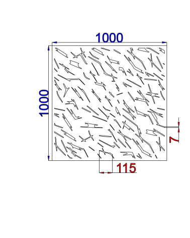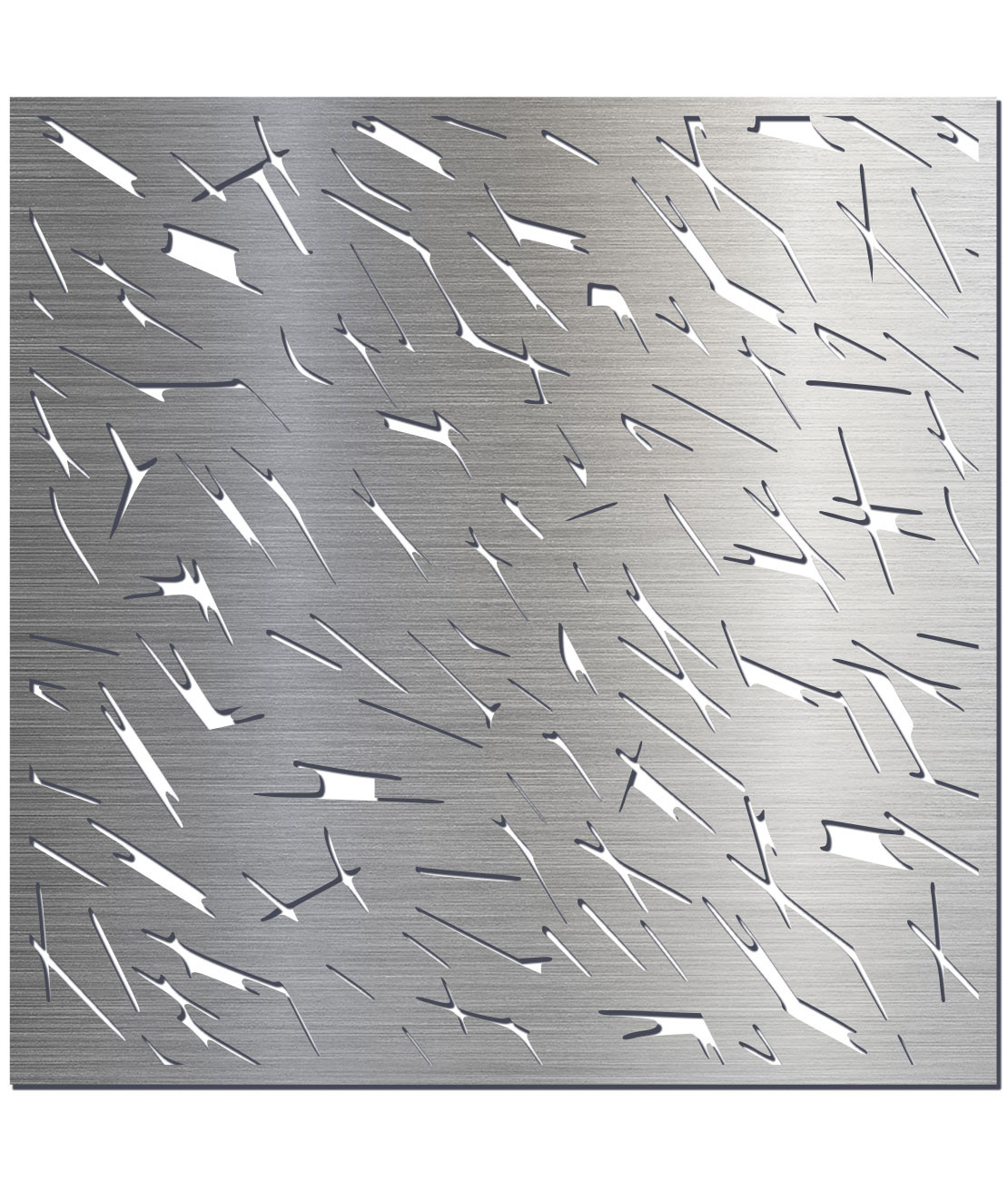 Vzory sú vypálené s laserom do kvalitných plechov. Hrúbka plechu je pri oceli, nereze, cortenu a pozinku 2mm a pre hliník 3mm.