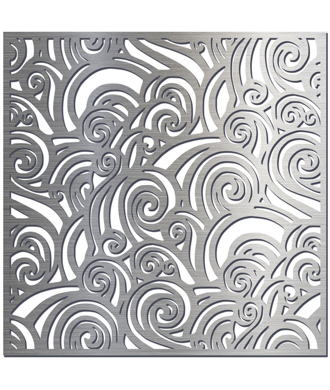 Vzory sú vypálené s laserom do kvalitných plechov. Hrúbka plechu je pri oceli, nereze, cortenu a pozinku 2mm a pre hliník 3mm.