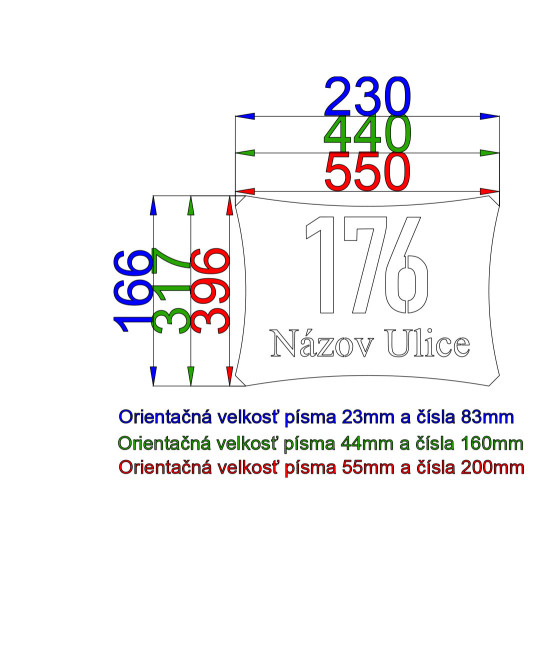 - Možnosť voľby podkladu ( ďalší plech ktorý tieňuje číslo domu a vytvára mu tak pozadie )