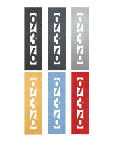 • Čísla a podklady sú v oceľovom prevedení šiestich farbách ( čierna, antracit, strieborná, zlatá, modrá a červená )