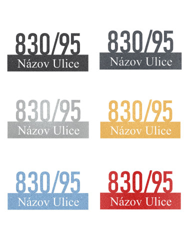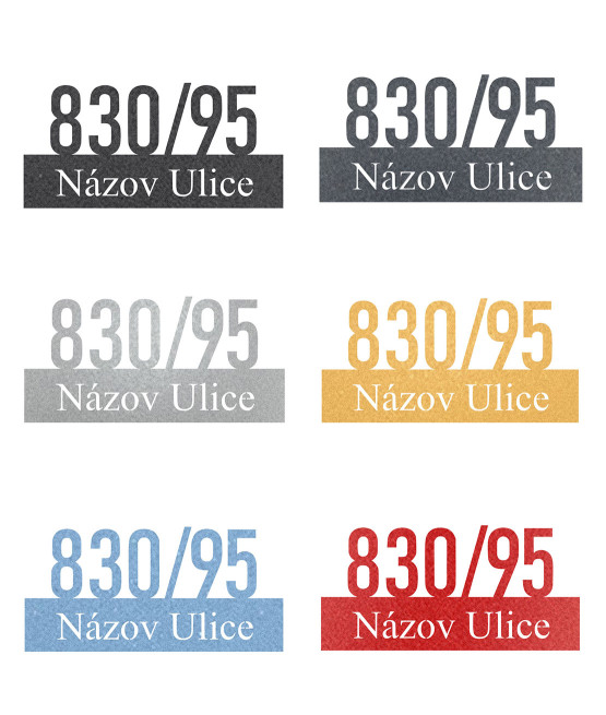 - Čísla a podklady sú v oceľovom prevedení šiestich farbách ( čierna, antracit, strieborná, zlatá, modrá a červená )