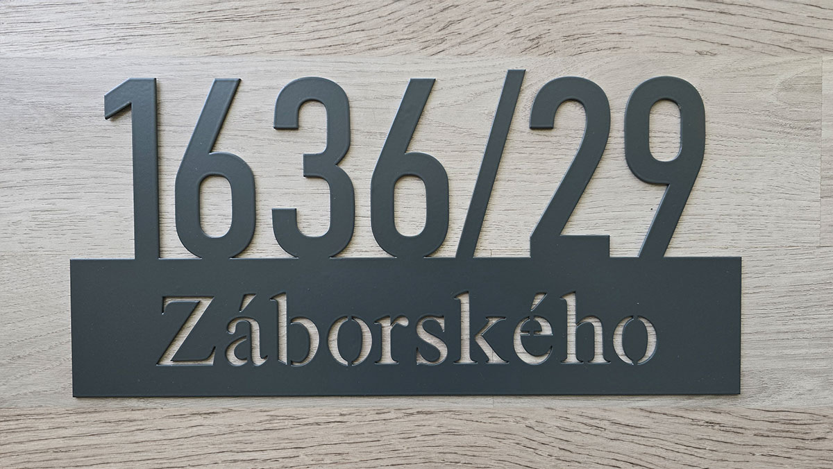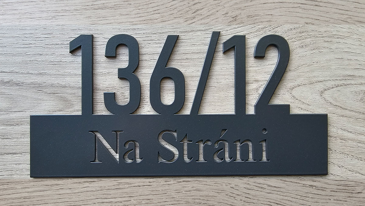 - Práškovanie plechových čísiel domu robíme cez externú firmu