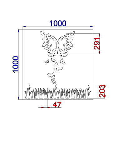 Vzory sú vypálené s laserom do kvalitných plechov. Hrúbka plechu je pri oceli, nereze, cortenu a pozinku 2mm a pre hliník 3mm.